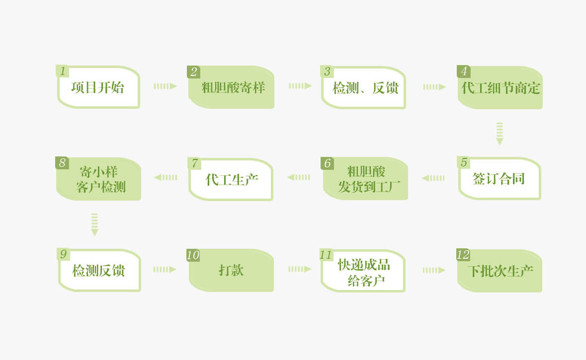 提供给海山都®的粗胆酸包括提取熊去氧胆酸后的母液,鸡胆、猪胆等提取后的残余物料,合作方式为:代工,由客户提供粗胆酸原料,海山都®根据客户需求加工提取成符合客户要求的胆酸成品,海山都®根据提供给客户的成品重量收取相应代加工费。